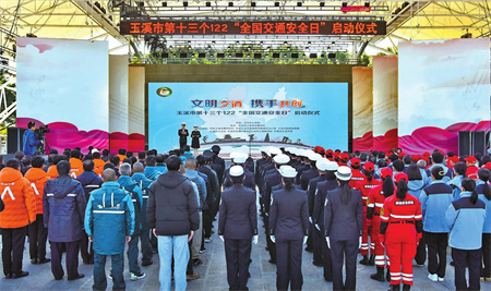 12月2日,玉溪市公安局、市委网信办、市委文明办、市教育体育局、市司法局、市交通运输局、市应急管理局、团市委八家单位,联合在聂耳广场举办第十三个122“全国交通安全日”系列活动启动仪式。公安交警、道路运输人员、警邮警保代表、应急救援队员、驾校学员、外卖网约车行业成员代表、媒体记者、志愿者代表,以及社会各界广大交通参与者共200余人参加了启动仪式。活动旨在通过形式多样的体验式、互动式线上线下活动,掀起“文明交通,携手共创”交通安全新风,助推玉溪创建全国文明城市。